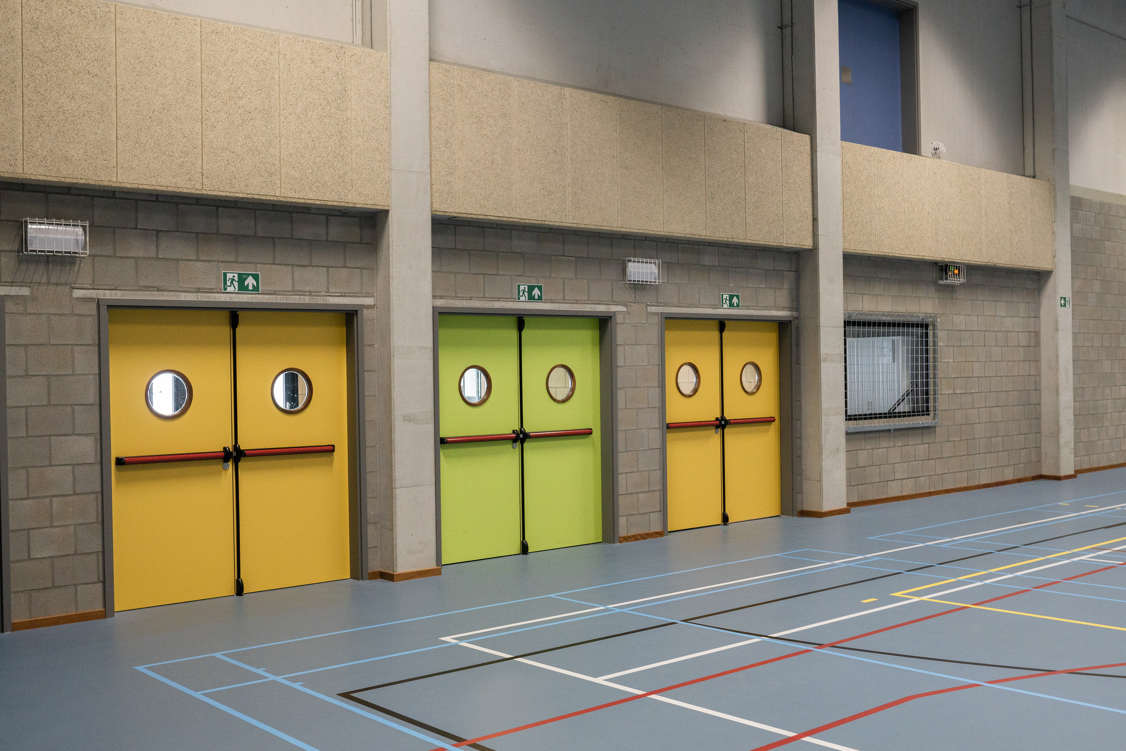 Kleurrijke accenten in de afwerking van dit sportcomplex